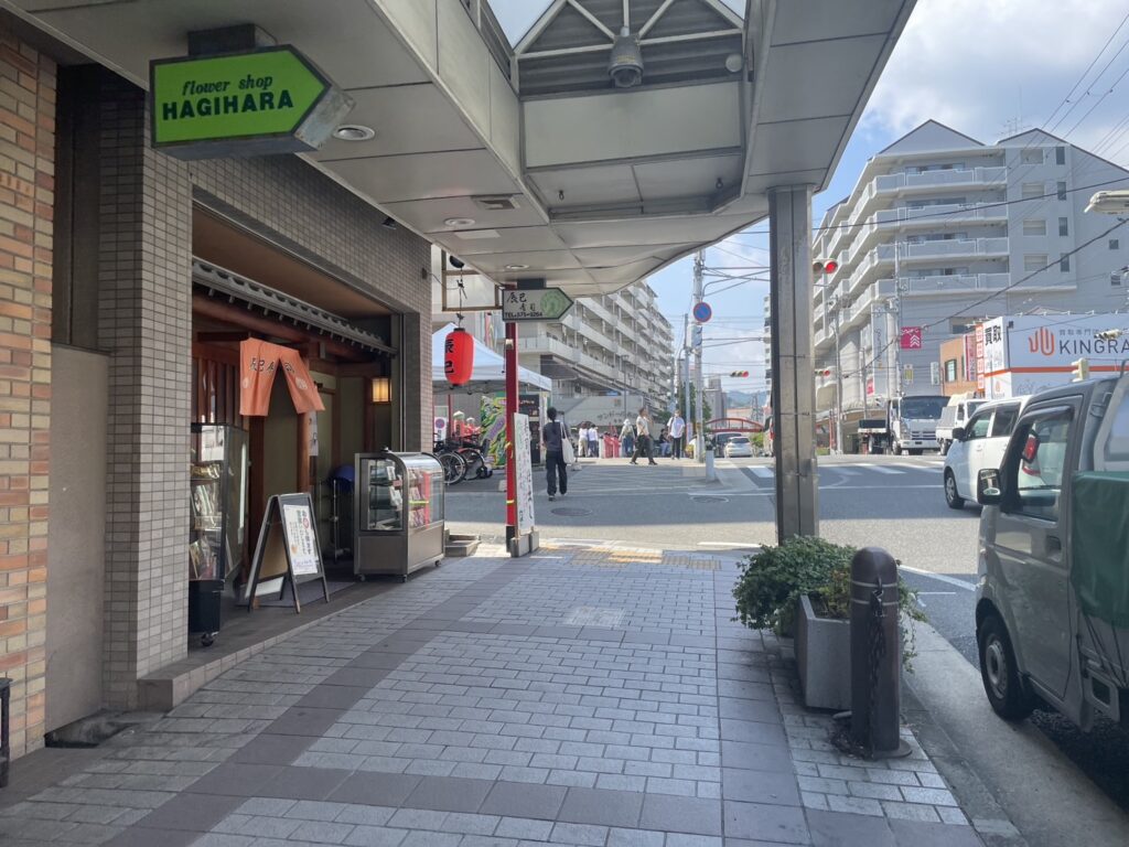 長田駅前から長田神社まで約430メートルある商店街で、店舗の約7割が創業50年を超え、創業150年になる和菓子屋さんなどもあります。